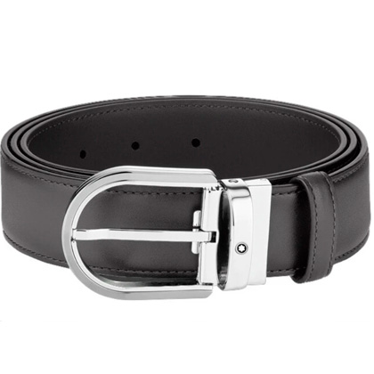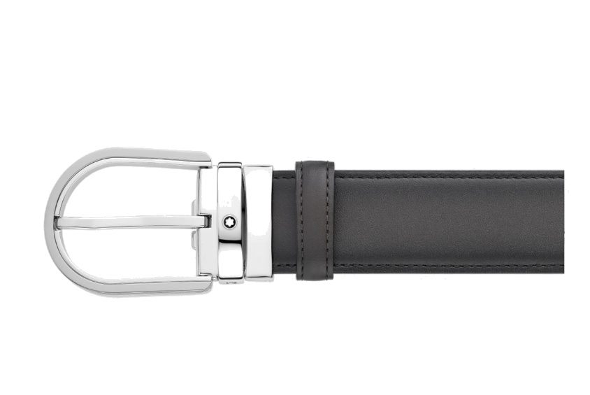 Кожаный ремень с пряжкой в форме подковы серого цвета 35 мм от магазина премиальных ручек Premium Pens в Обнинске.